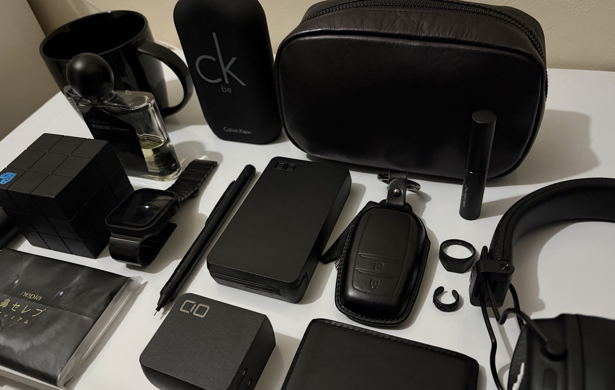 持ち歩く物、日常的に使う物、食べ物、仕事で使う物に関しても、全部黒にしようとしています。